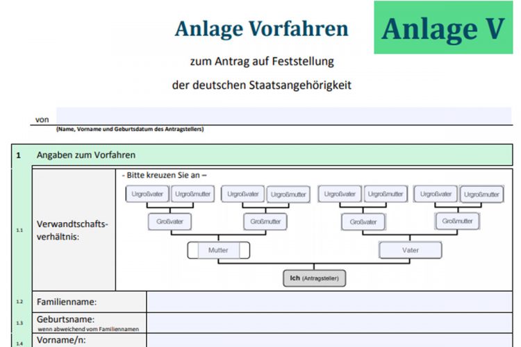 Esse formulário deve ser preenchido para todos os envolvidos no processo de cidadania, desde o ascendente alemão até a última geração a requerer a cidadania, com um documento por pessoa.